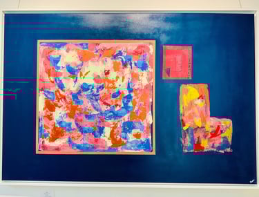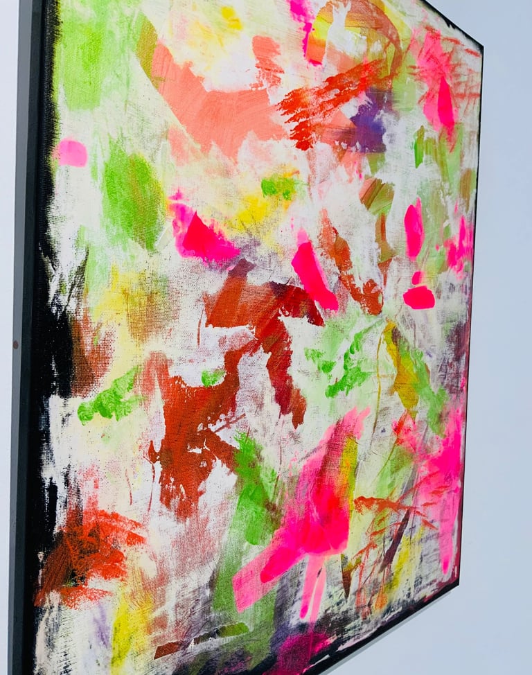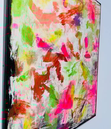 Tokn's paintings are a mesmerizing exploration of colour and form, showcasing the elusive artist's unique ability to blend abstract elements with deep emotion. The intricate layering of vibrant hues creates a sense of depth that invites viewers to lose themselves in the canvas.